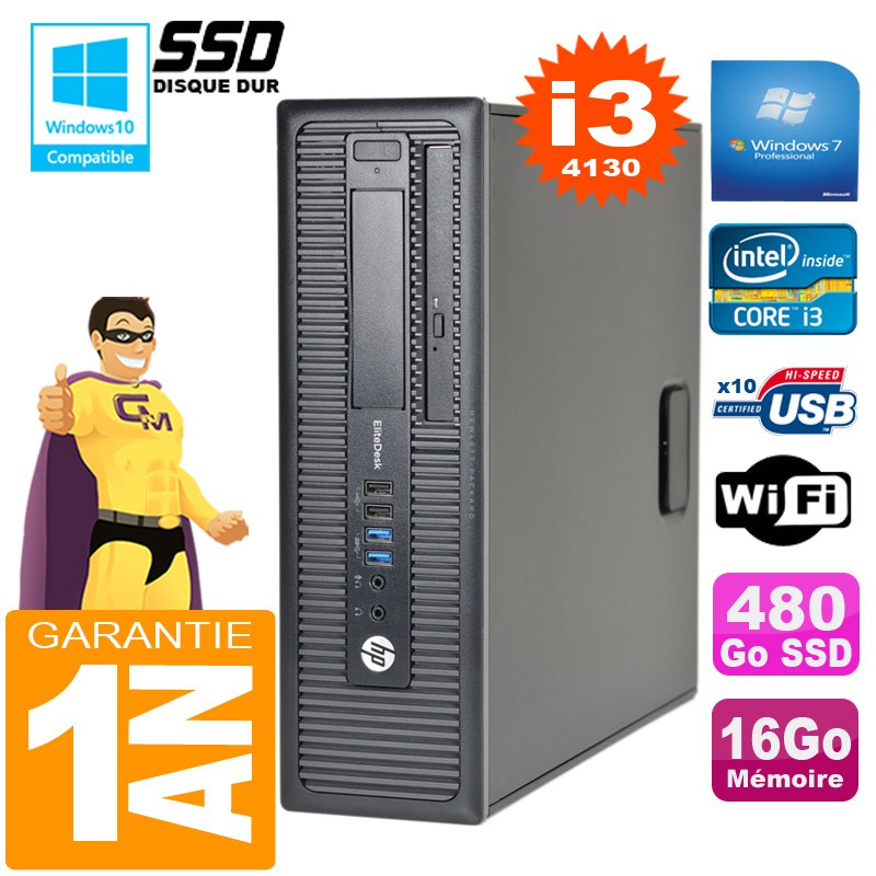 PC HP EliteDesk 800 G1 SFF Core I3-4130 16Go Disque 480Go SSD Graveur DVD Wifi W7