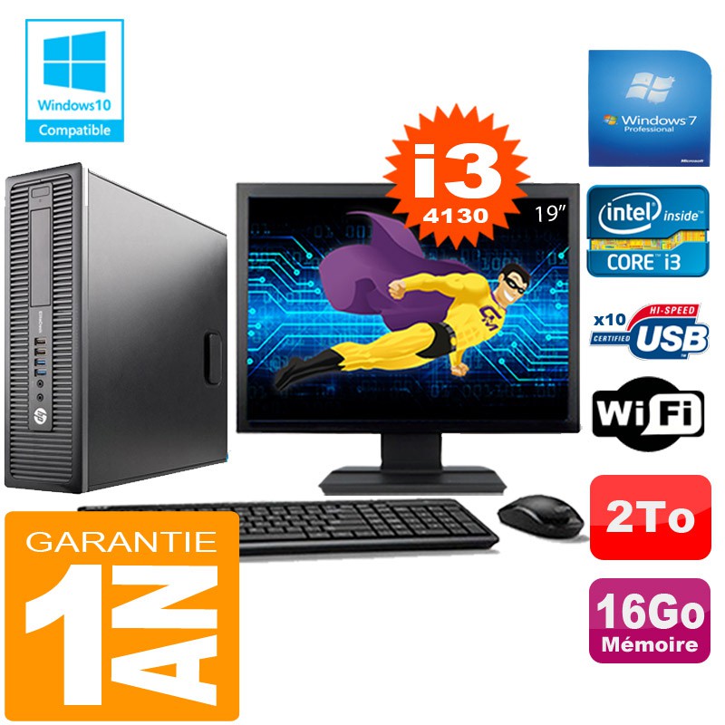 PC HP EliteDesk 800 G1 SFF Core I3-4130 16Go Disque 2 To Wifi W7 Ecran 19"