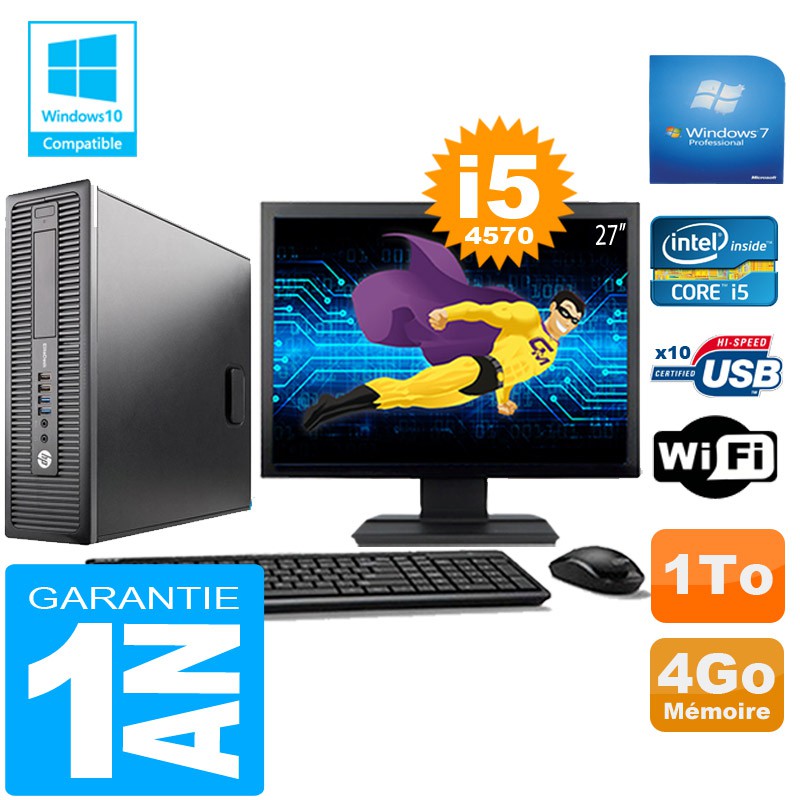 PC HP EliteDesk 800 G1 SFF Core I5-4570 4Go Disque 1 To Wifi W7 Ecran 27"