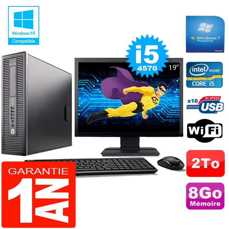 PC HP EliteDesk 800 G1 SFF Core I5-4570 8Go Disque 2 To Wifi W7 Ecran 19"