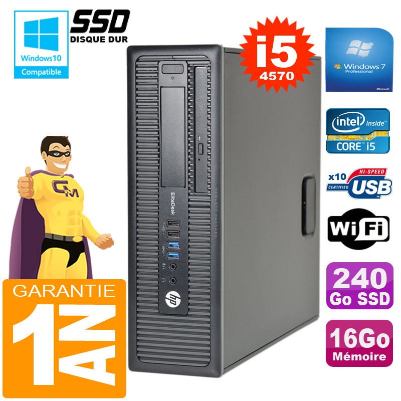 PC HP EliteDesk 800 G1 SFF Core I5-4570 16Go Disque 240Go SSD Graveur DVD Wifi W7