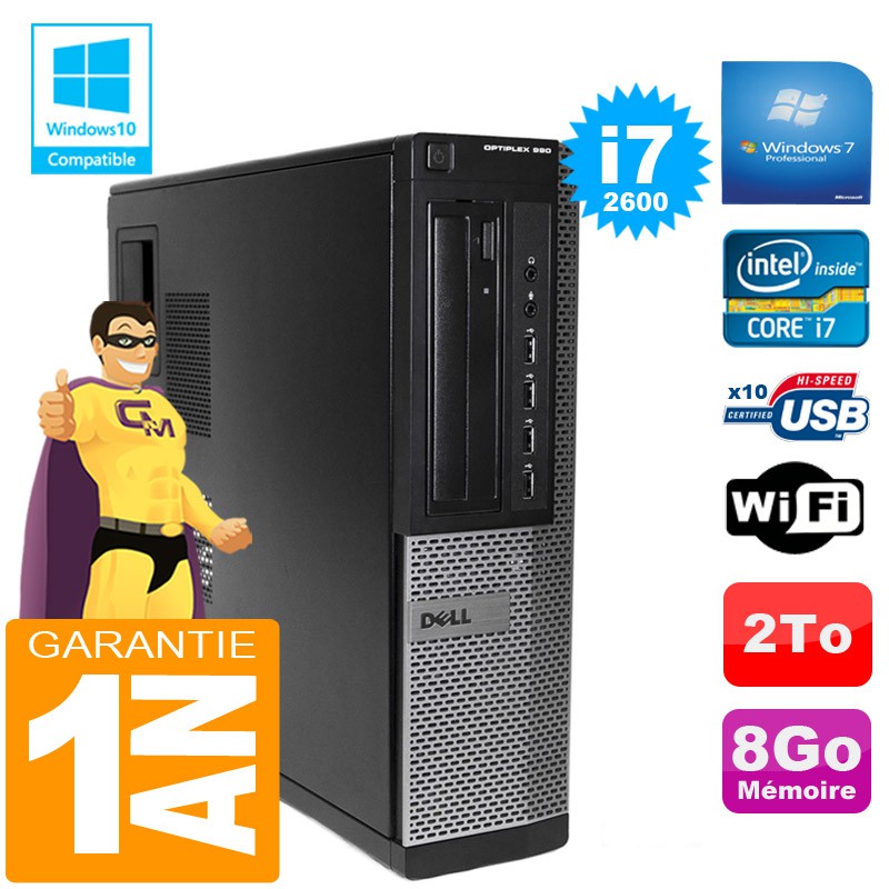 PC DELL Optiplex 990 DT - Intel® Core I7-2600 3,4Ghz (8 Mo de cache) - 8 Go DDR3 - Disque Dur 2 To - Graveur DVD - Clé WIFI USB - Windows 7 Pro - Garantie = 1 an.