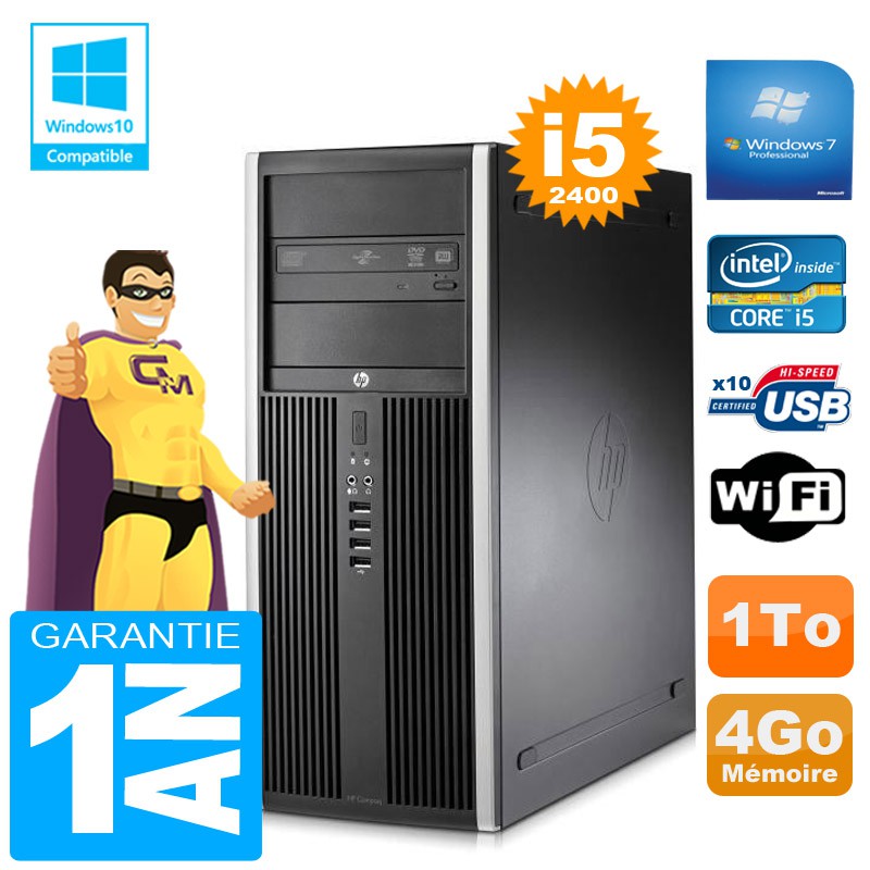 PC Tour HP Compaq 8200 Core I5-2400 Ram 4Go Disque 1 To Graveur DVD Wifi W7