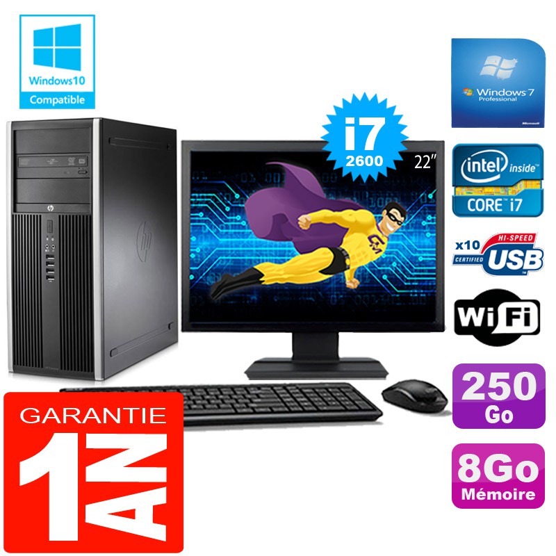 PC Tour HP Compaq 8200 Core I7-2600 Ram 8Go Disque 250 Go Wifi W7 Ecran 22"