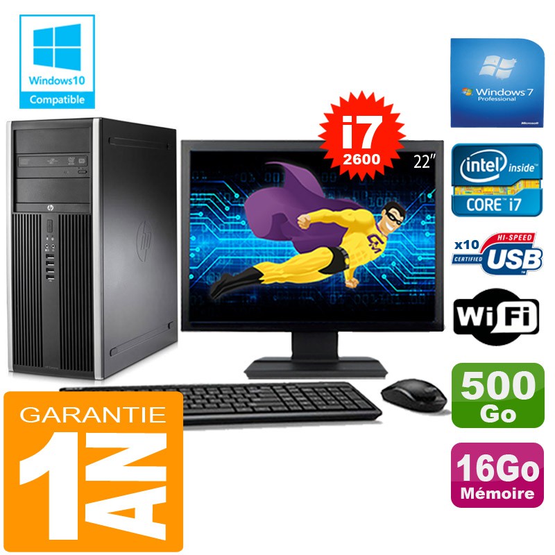 PC Tour HP Compaq 8200 Core I7-2600 Ram 16Go Disque 500 Go Wifi W7 Ecran 22"