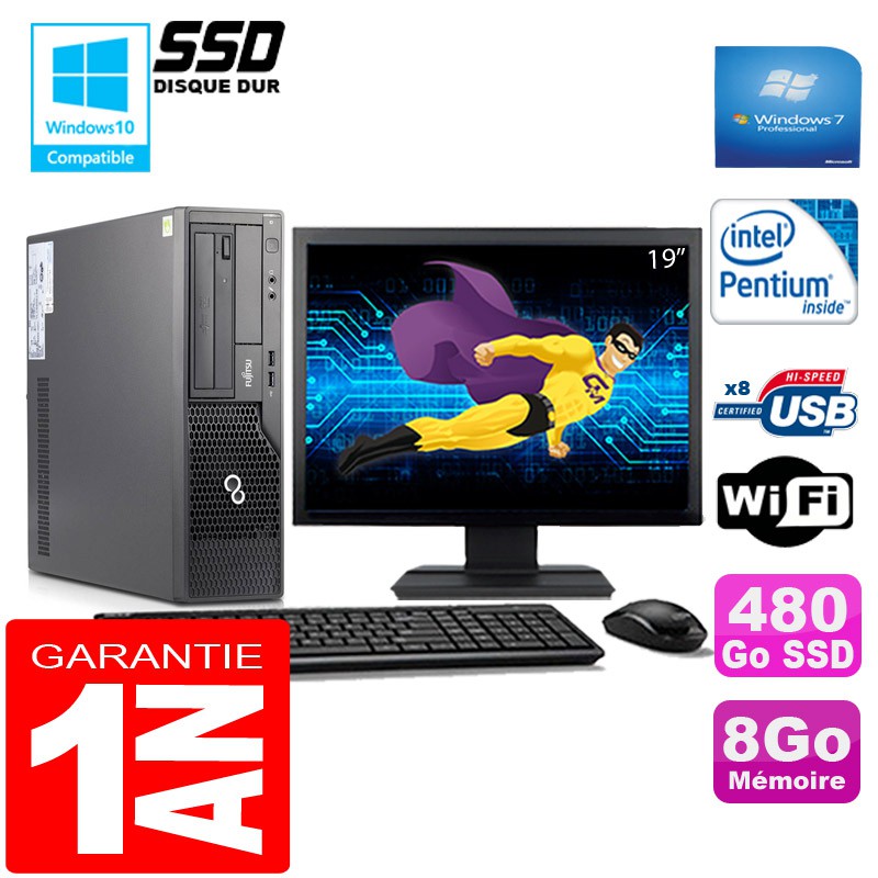 PC Fujitsu Esprimo E500 E85+ SFF G640 8Go Disque 480Go SSD Wifi W7 Ecran 19"