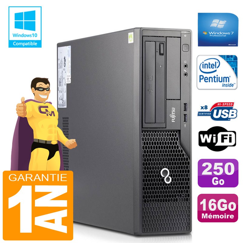 PC Fujitsu Esprimo E500 E85+ SFF - Intel G640 2,80Ghz - 16Go DDR3 - Disque Dur 250Go - Graveur DVD - Clé WIFI USB - Windows 7 Pro - Garantie = 1 an.