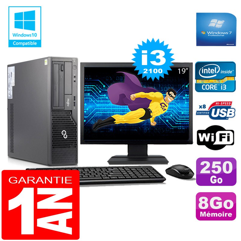 PC Fujitsu Esprimo E500 E85+ SFF -Core I3-2100 3,10Ghz - 8Go DDR3 - Disque Dur 250Go - Graveur DVD - Clé WIFI USB - Windows 7 Pro - Pack Clavier + Souris + Ecran 19" ( Marque et modéles selon arrivages) - Garantie = 1 an.