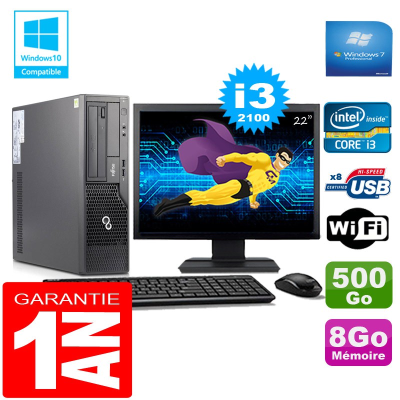 PC Fujitsu Esprimo E500 E85+ SFF I3-2100 RAM 8Go Disque 500Go Wifi W7 Ecran 22"