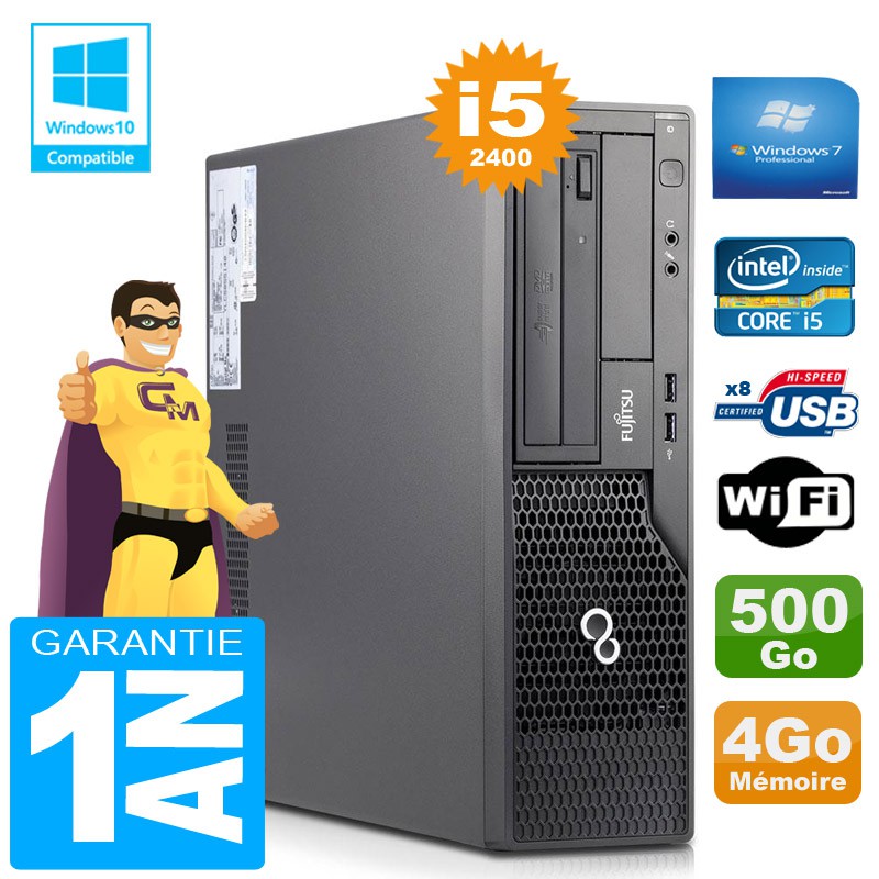 PC Fujitsu Esprimo E500 E85+ SFF - Core I5-2400 3,10Ghz - 4Go DDR3 - Disque Dur 500Go - Graveur DVD - Clé WIFI USB - Windows 7 Pro - Garantie = 1 an.