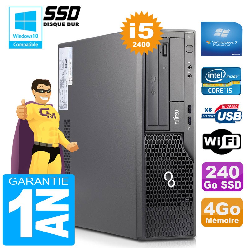 PC Fujitsu Esprimo E500 E85+ SFF - Core I5-2400 3,10Ghz - 4Go DDR3 - Disque Dur 240 Go SSD - Graveur DVD - Clé WIFI USB - Windows 7 Pro - Garantie = 1 an.