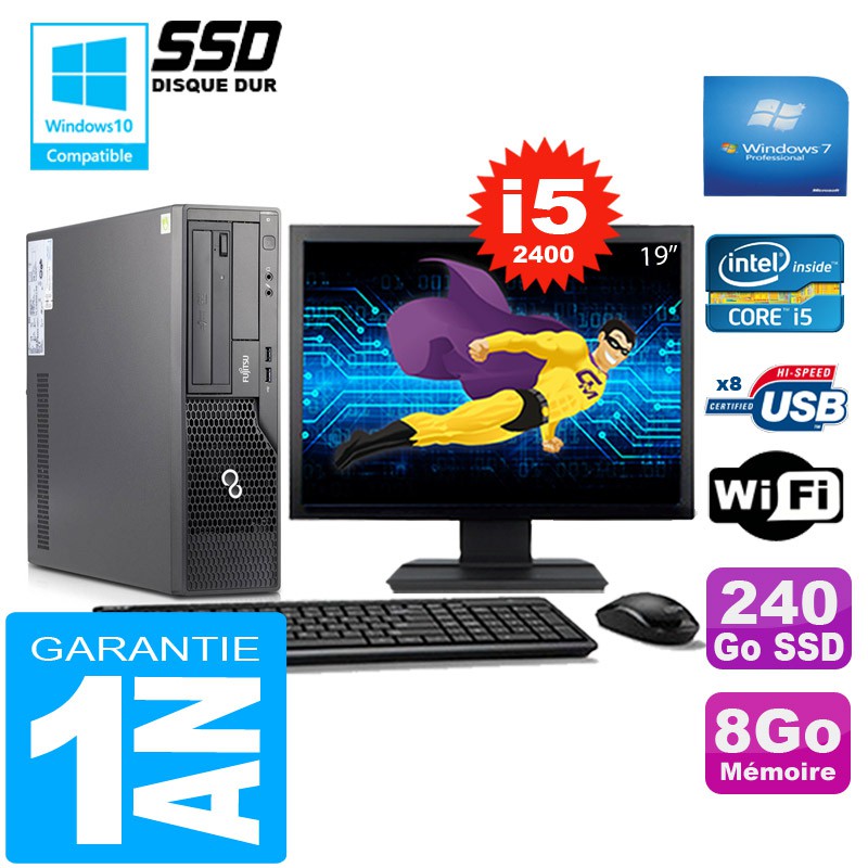 PC Fujitsu Esprimo E500 E85+ SFF I5-2400 8Go Disque 240Go SSD Wifi W7 Ecran 19"
