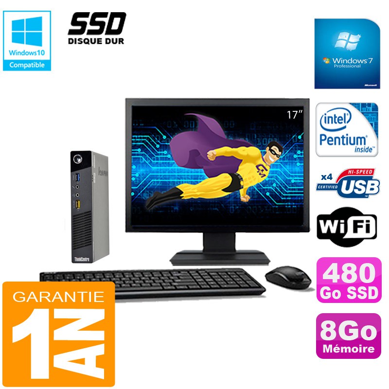 Ultra Mini PC Lenovo M73 USFF Tiny G3250T 8Go Disque 480Go SSD Wifi W7 Ecran 17"
