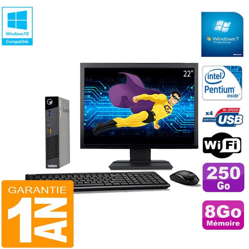 Ultra Mini PC Lenovo M73 USFF Tiny G3250T 8Go Disque 250Go Wifi W7 Ecran 22"