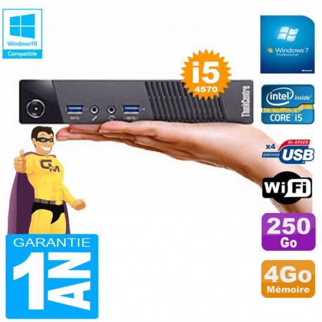 Ultra Mini PC Lenovo M73 USFF Tiny - Core I5-4570 3,2Ghz (6 Mo de cache) - 4 Go DDR3 - Disque Dur 250 Go - Clé WIFI USB - Windows 7 Pro - Garantie = 1 an.