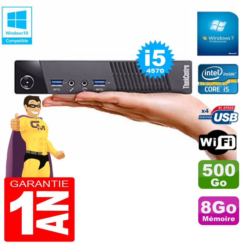 Ultra Mini PC Lenovo M73 USFF Tiny - Core I5-4570 3,2Ghz (6 Mo de cache) - 8 Go DDR3 - Disque Dur 500 Go - Clé WIFI USB - Windows 7 Pro - Garantie = 1 an.