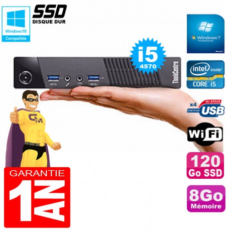 Ultra Mini PC Lenovo M73 USFF Tiny - Core I5-4570 3,2Ghz (6 Mo de cache) - 8 Go DDR3 - Disque Dur 120 Go SSD - Clé WIFI USB - Windows 7 Pro - Garantie = 1 an.