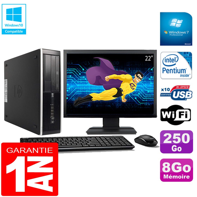 PC HP Compaq Pro 6300 SFF G630 RAM 8Go 250Go Graveur DVD Wifi W7 Ecran 22"