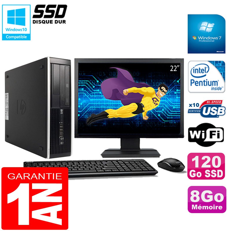 PC HP Compaq Pro 6300 SFF G630 RAM 8Go 120Go SSD Graveur DVD Wifi W7 Ecran 22"