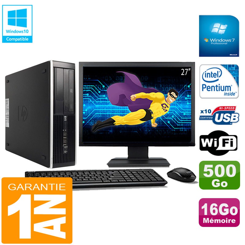PC HP Compaq Pro 6300 SFF G630 RAM 16Go 500Go Graveur DVD Wifi W7 Ecran 27"