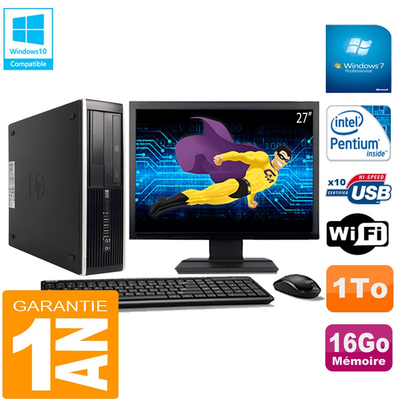 PC HP Compaq Pro 6300 SFF G630 RAM 16Go 1To Graveur DVD Wifi W7 Ecran 27"