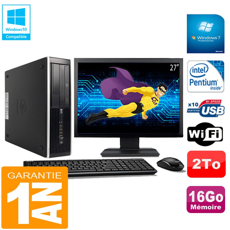 PC HP Compaq Pro 6300 SFF G630 RAM 16Go 2To Graveur DVD Wifi W7 Ecran 27"