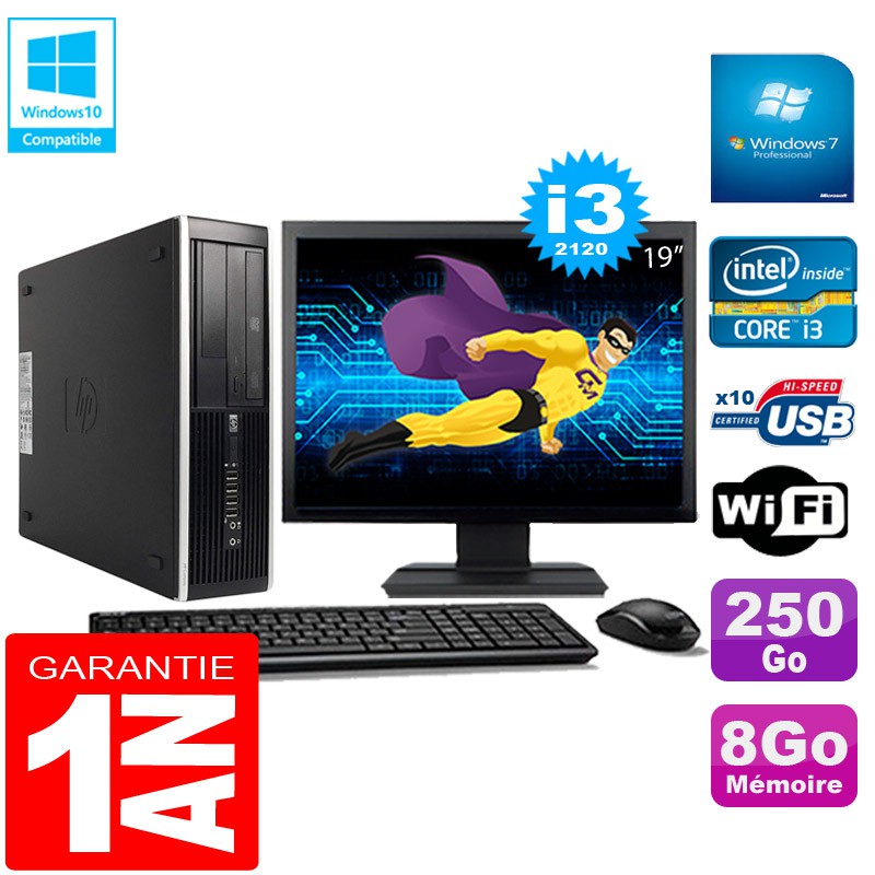 PC HP Compaq Pro 6300 SFF I3-2120 8Go 250Go Graveur DVD Wifi W7 Ecran 19"