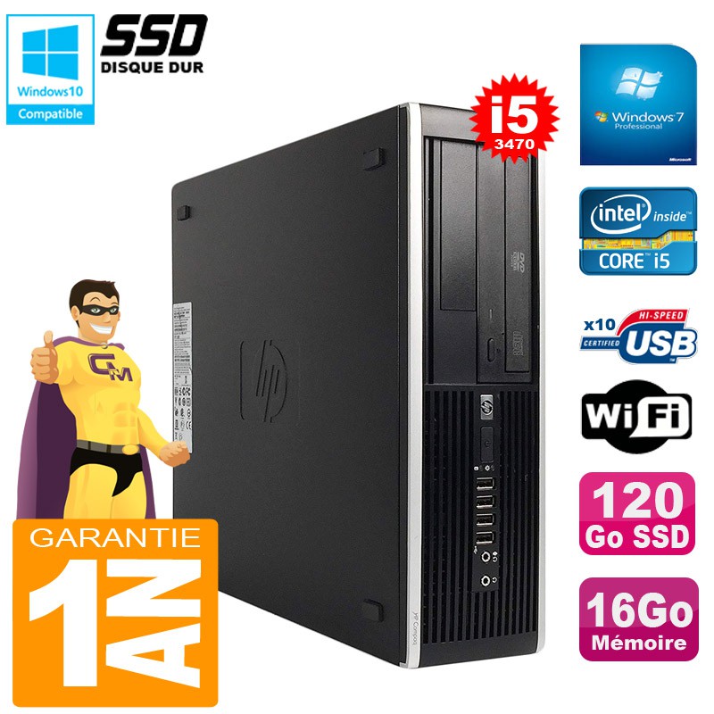 PC HP Compaq Pro 6300 SFF I5-3470 RAM 16Go Disque 120Go SSD Graveur DVD Wifi W7