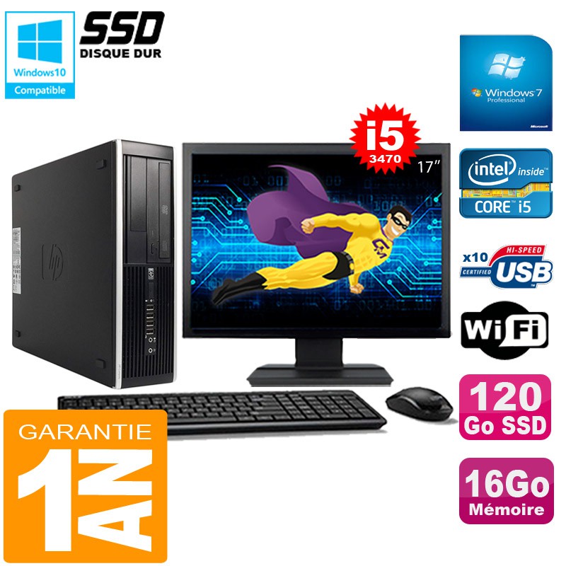PC HP Compaq Pro 6300 SFF I5-3470 16Go 120Go SSD Graveur DVD Wifi W7 Ecran 17"