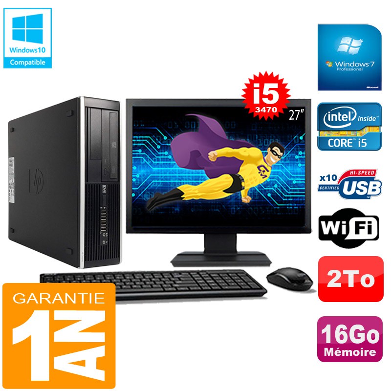 PC HP Compaq Pro 6300 SFF I5-3470 16Go 2To Graveur DVD Wifi W7 Ecran 27"