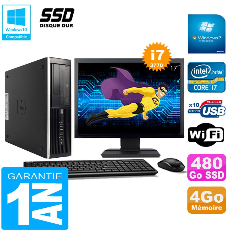 PC HP Compaq Pro 6300 SFF I7-3770 4Go 480Go SSD Graveur DVD Wifi W7 Ecran 17"