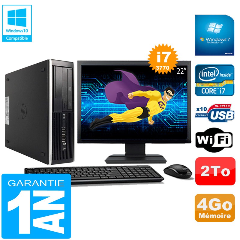 PC HP Compaq Pro 6300 SFF I7-3770 4Go 2To Graveur DVD Wifi W7 Ecran 22"