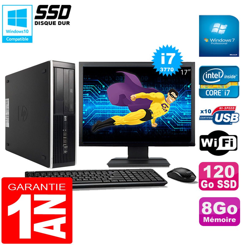 PC HP Compaq Pro 6300 SFF I7-3770 8Go 120Go SSD Graveur DVD Wifi W7 Ecran 17"