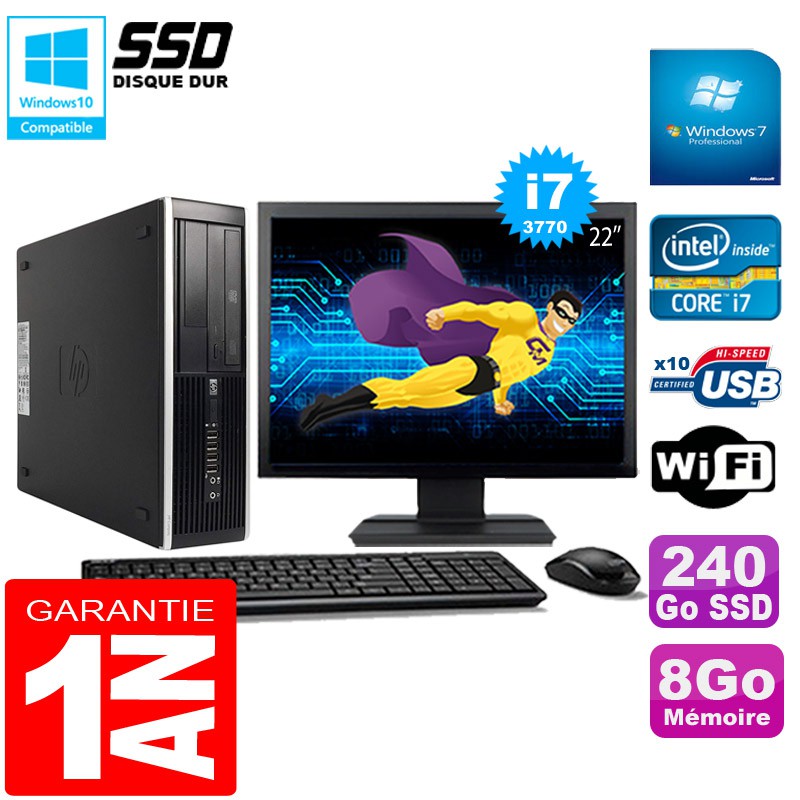 PC HP Compaq Pro 6300 SFF I7-3770 8Go 240Go SSD Graveur DVD Wifi W7 Ecran 22"