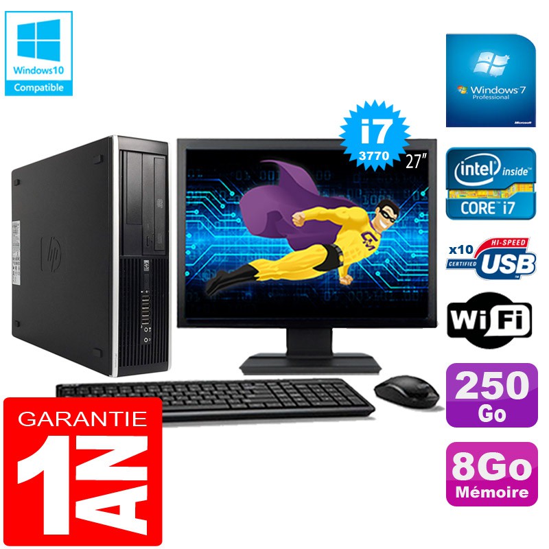 PC HP Compaq Pro 6300 SFF I7-3770 8Go 250Go Graveur DVD Wifi W7 Ecran 27"