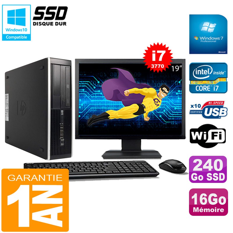 PC HP Compaq Pro 6300 SFF I7-3770 16Go 240Go SSD Graveur DVD Wifi W7 Ecran 19"