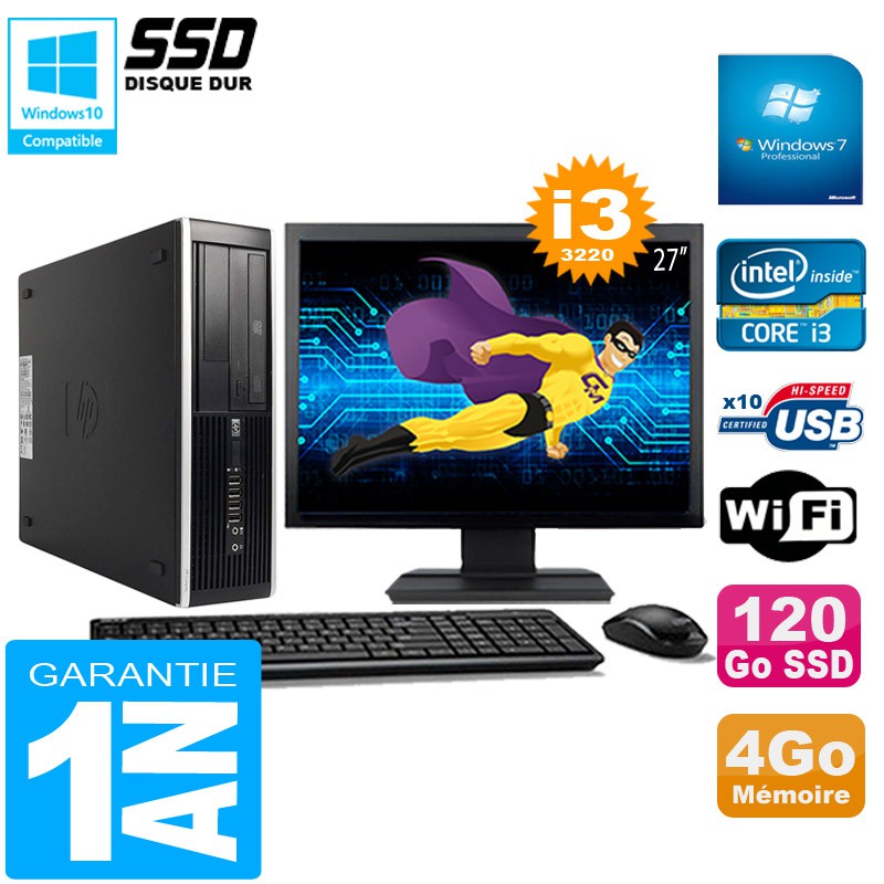 PC HP Compaq Pro 6300 SFF I3-3220 4Go 120Go SSD Graveur DVD Wifi W7 Ecran 27"