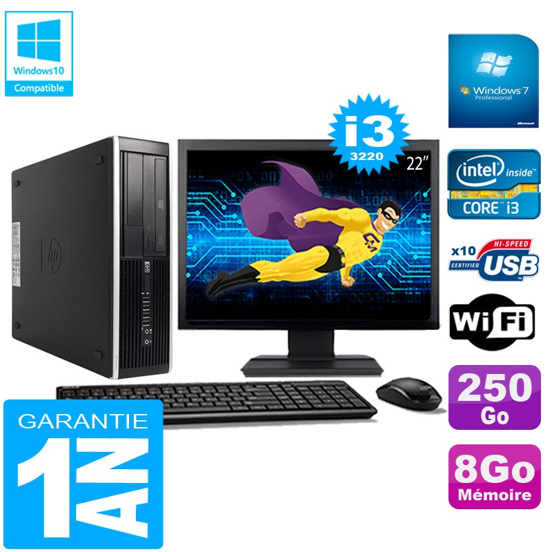 PC HP Compaq Pro 6300 SFF I3-3220 8Go 250Go Graveur DVD Wifi W7 Ecran 22"