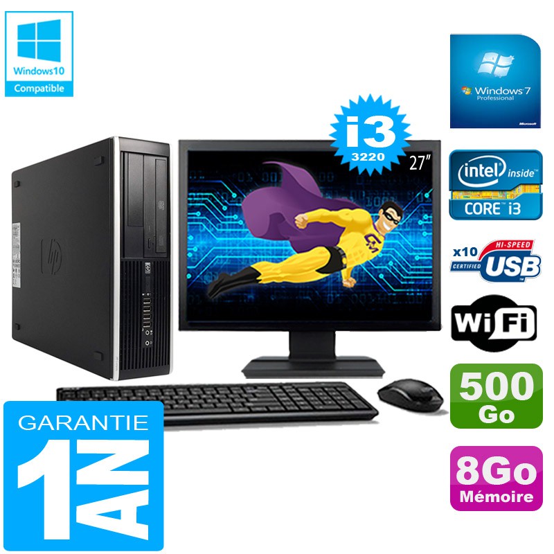 PC HP Compaq Pro 6300 SFF I3-3220 8Go 500Go Graveur DVD Wifi W7 Ecran 27"