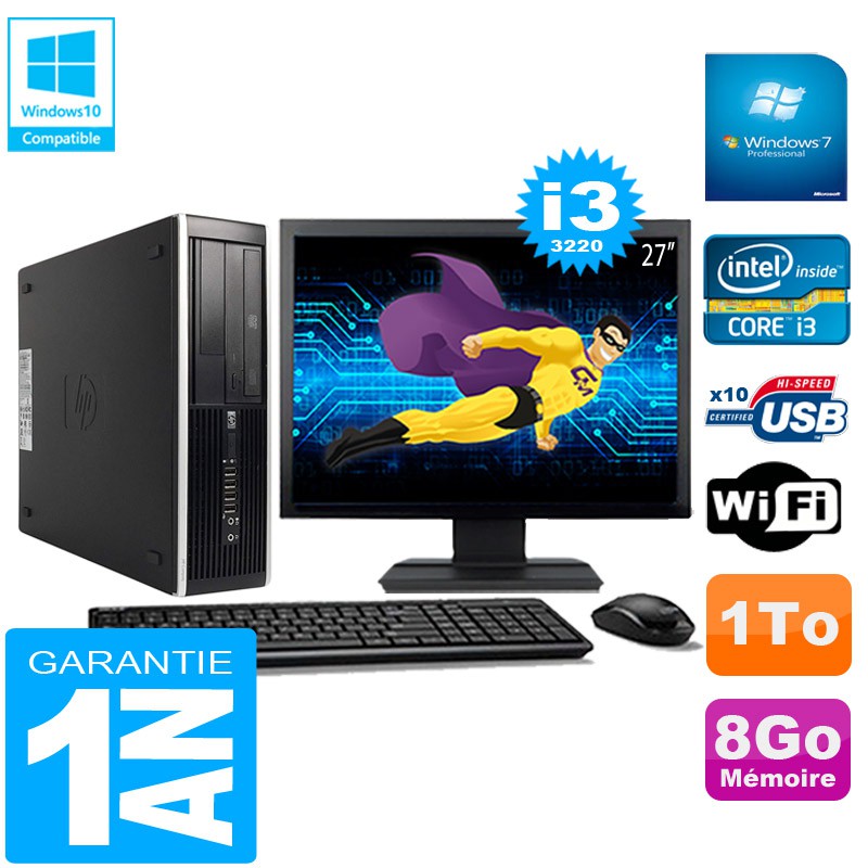 PC HP Compaq Pro 6300 SFF I3-3220 8Go 1To Graveur DVD Wifi W7 Ecran 27"