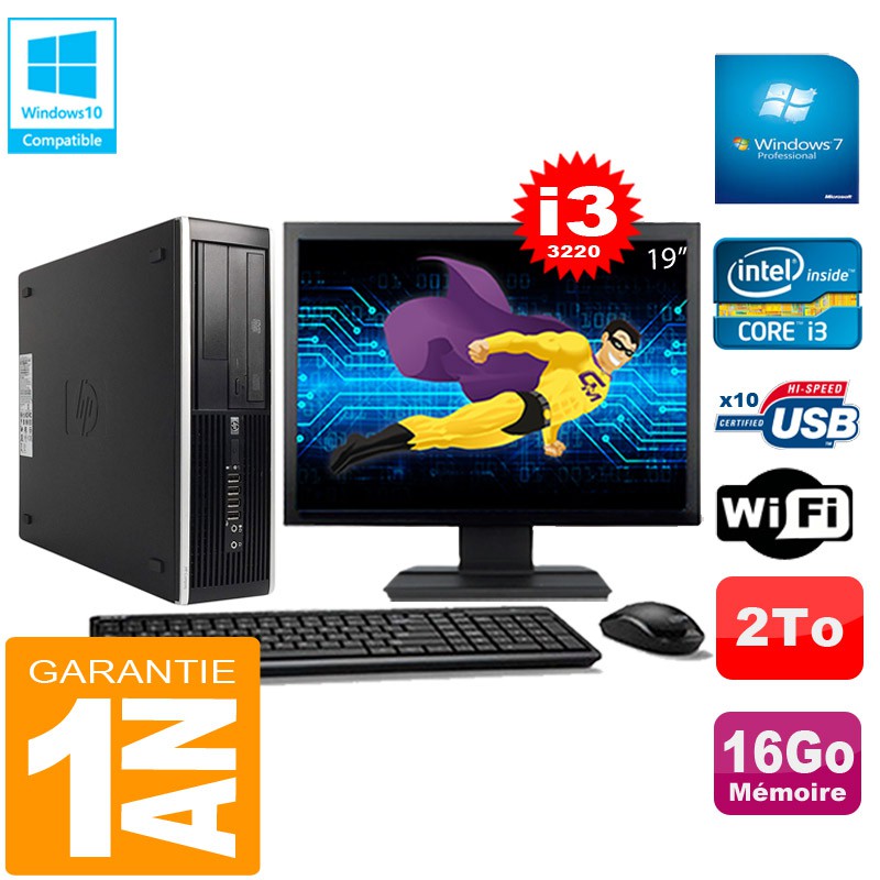 PC HP Compaq Pro 6300 SFF I3-3220 16Go 2To Graveur DVD Wifi W7 Ecran 19"