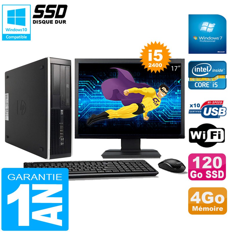 PC HP Compaq Pro 6300 SFF I5-2400 4Go 120Go SSD Graveur DVD Wifi W7 Ecran 17"