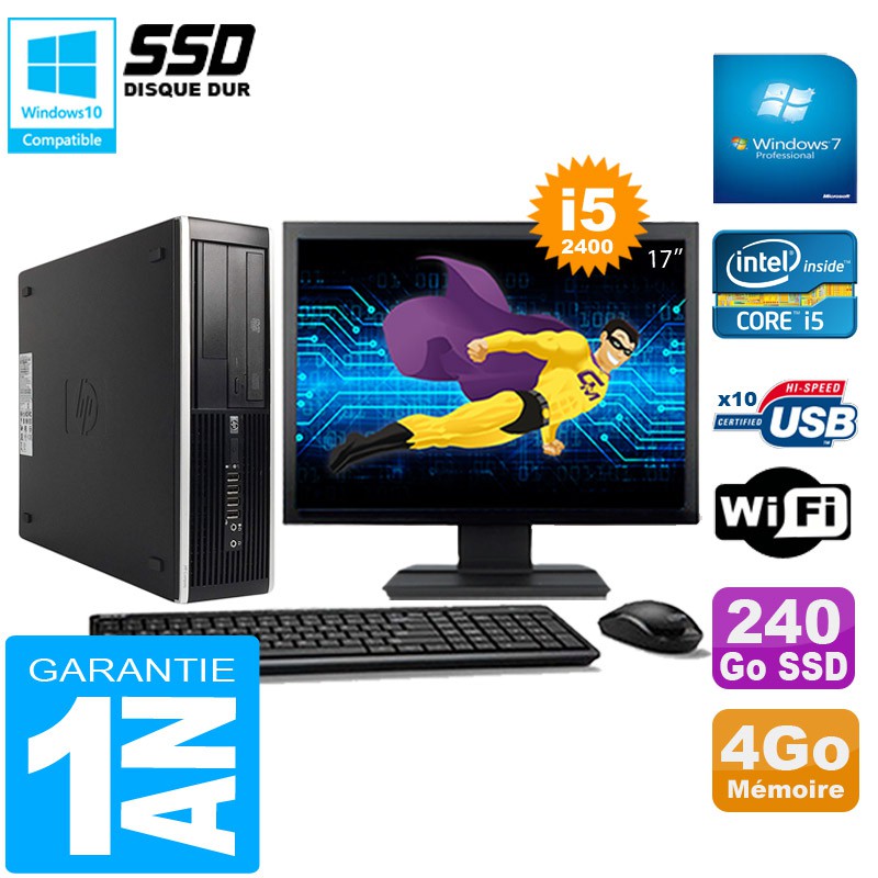 PC HP Compaq Pro 6300 SFF I5-2400 4Go 240Go SSD Graveur DVD Wifi W7 Ecran 17"