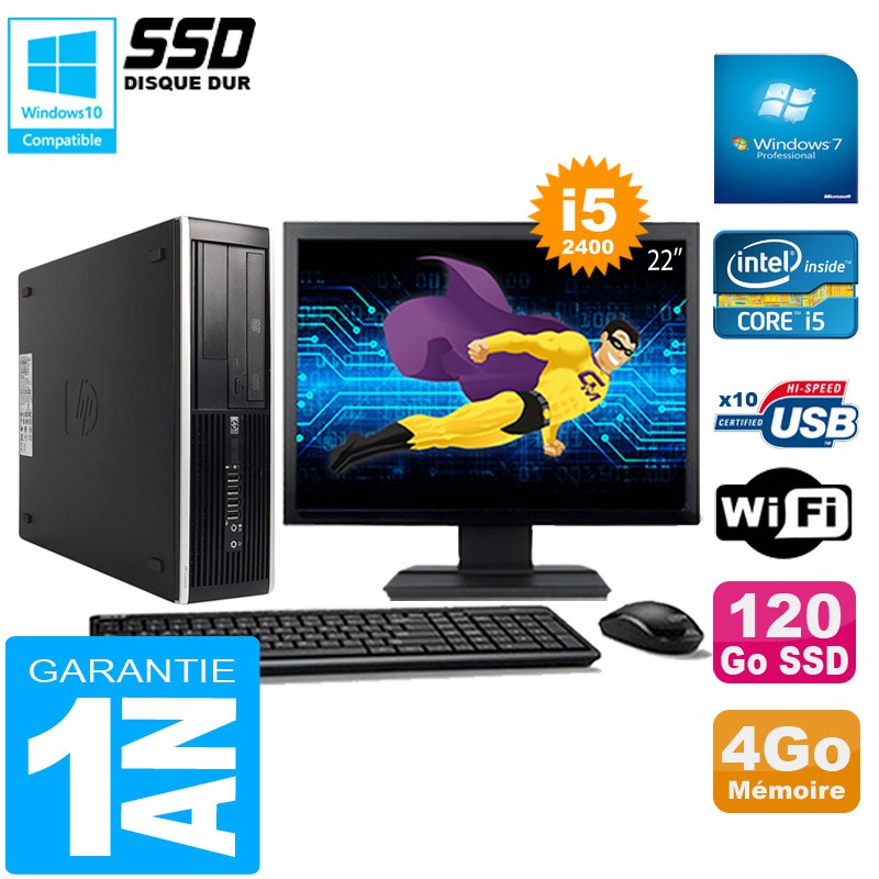 PC HP Compaq Pro 6300 SFF I5-2400 4Go 120Go SSD Graveur DVD Wifi W7 Ecran 22"
