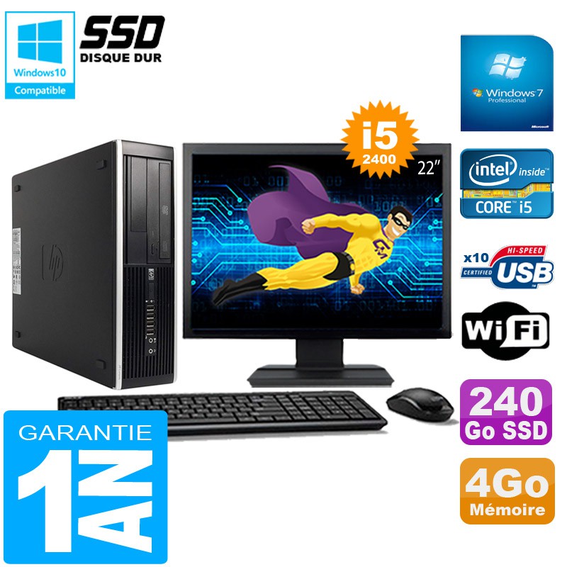 PC HP Compaq Pro 6300 SFF I5-2400 4Go 240Go SSD Graveur DVD Wifi W7 Ecran 22"
