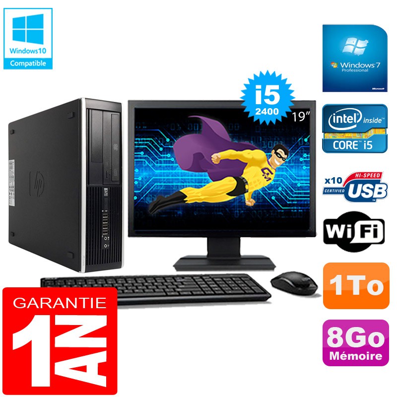 PC HP Compaq Pro 6300 SFF I5-2400 8Go 1To Graveur DVD Wifi W7 Ecran 19"