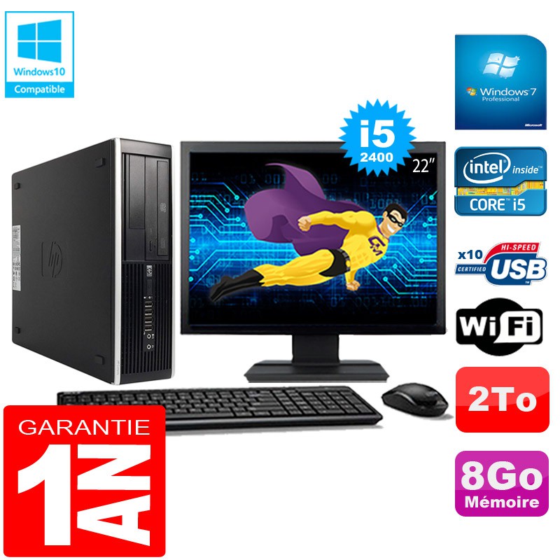 PC HP Compaq Pro 6300 SFF I5-2400 8Go 2To Graveur DVD Wifi W7 Ecran 22"