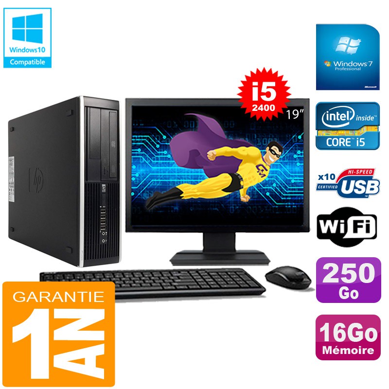 PC HP Compaq Pro 6300 SFF I5-2400 16Go 250Go Graveur DVD Wifi W7 Ecran 19"