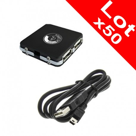 Lot de 50 Mini HUB USB -Point of View - 4 Ports USB 2.0 Cable - PC Portable - Garantie = 6 Mois.