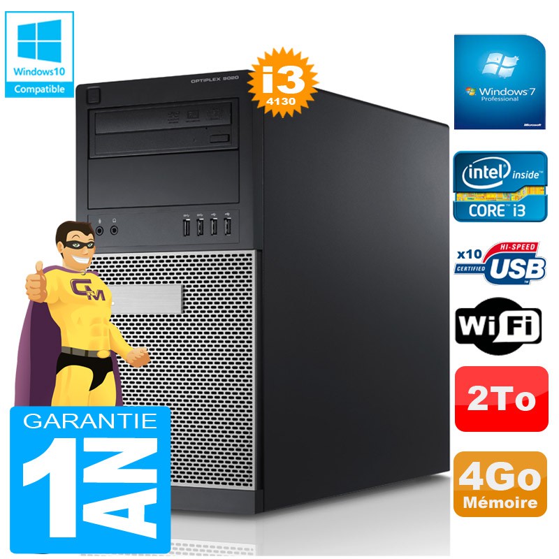 PC Tour DELL Optiplex 9020 - Intel Core I3-4130 3,4Ghz (3 Mo de cache) - 4Go DDR3 - Disque Dur 2 To - Graveur DVD - Clé WIFI USB - Windows 7 Pro - Garantie = 1 an.
